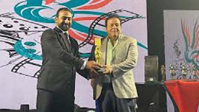 تسلم الجائزة الدكتور عاطف عبد اللطيف مؤلف وبطل فيلم البطارية ضعيفة.